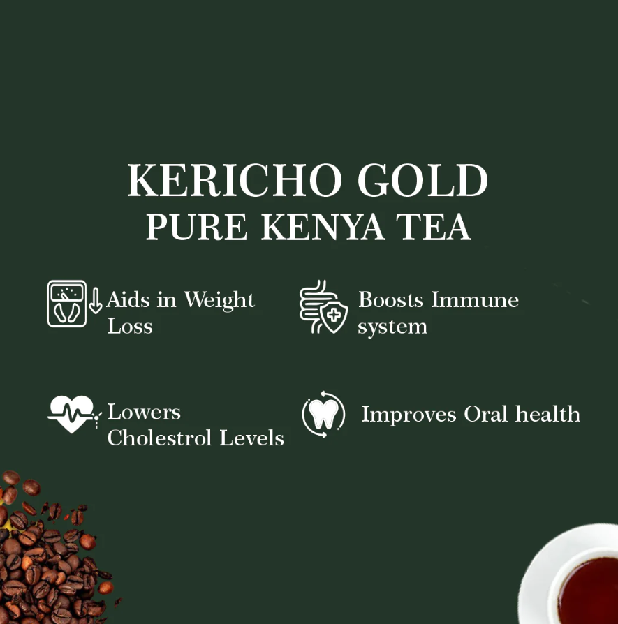 Our iconic Kericho Gold Black Tea is finely balanced in richness, strength, and aroma for the perfect Kenyan tea experience. Carefully selected from the finest tea leaves, this blend offers a bold, full-bodied taste that embodies the essence of premium Kenyan tea.