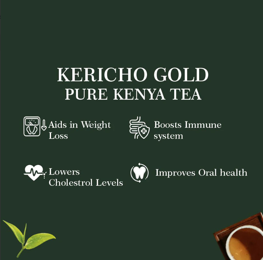 We have good news for all the tea connoisseurs out there! Add a teaspoon of Kericho Gold Loose Tea leaves to your cup and experience a revitalizing start to your day. Enriched with beneficial flavonoids, this premium loose tea helps combat morning fatigue and supports overall well-being.