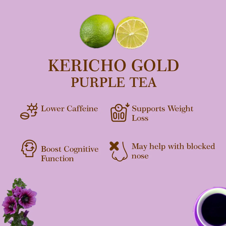 A delicate blend of antioxidant-rich purple tea, soft floral mallow blossoms, and tangy lemon—perfect for a refreshing and soothing experience.